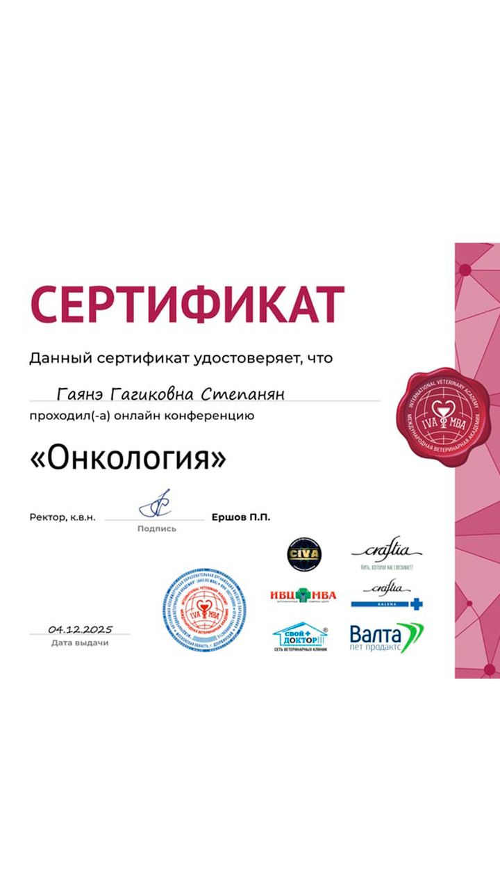 Хочу выразить огромную благодарность гопиталю и высокому профессионализму.Особая благодарность нашему! Да! И только нашему врачу Гаянэ Гагиковне.Самый потрясающий хирург, чуткий и внимательный Человек!Профи своего дела, хирург с золотыми руками. У йорка( мини) вес маленький, было проведено две операции, и все прошло на Ура!Спасибо Гаянэ Гагиковна и низкий поклон. С любовью ❤️от нас и питомца Нюшеньки.